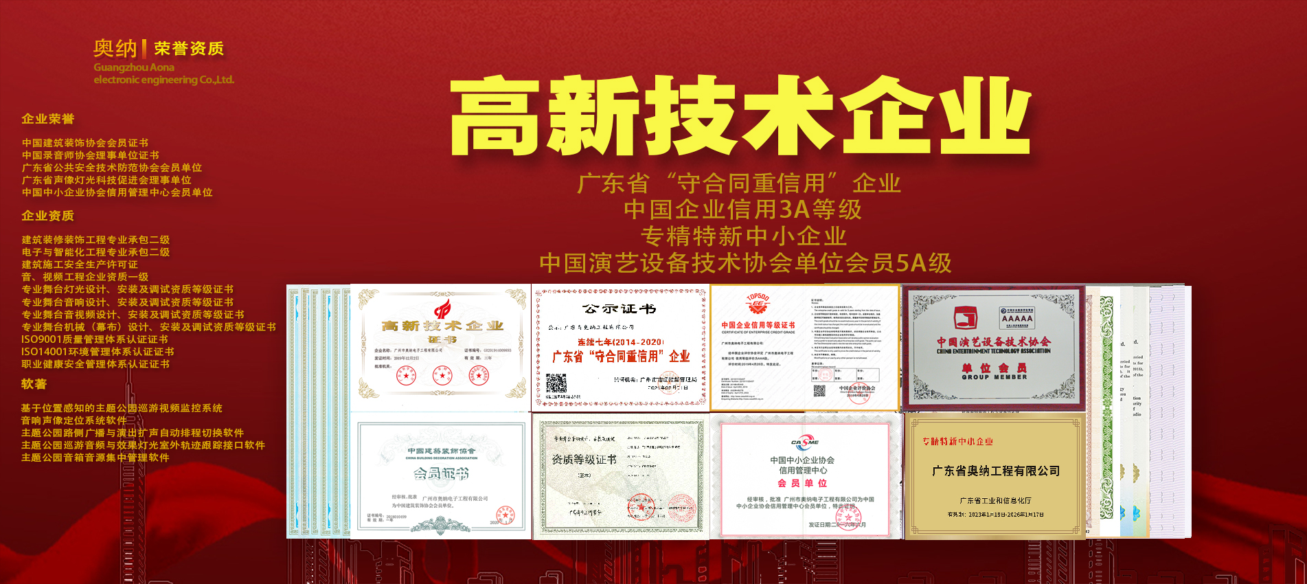 公司現(xiàn)擁有多項(xiàng)資質(zhì)證書(shū),獲得專利和軟著近百項(xiàng),并先后榮獲百?gòu)?qiáng)工程商、優(yōu)秀文旅演藝獎(jiǎng)等獎(jiǎng)項(xiàng),在科學(xué)化、標(biāo)準(zhǔn)化、規(guī)范化方面深得客戶信賴。公司參與建設(shè)的“華南理工大學(xué)國(guó)際校區(qū)圖書(shū)館”榮獲2022-2023年度中國(guó)建設(shè)工程魯班獎(jiǎng)。